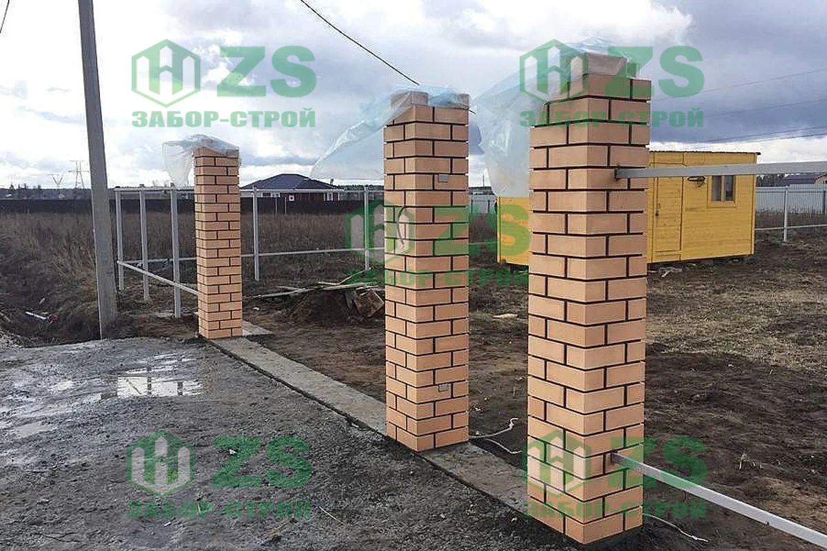 Процесс установки начинается с размещения опор из профильной трубы вдоль периметра участка, с последующим точечным бетонированием и заливкой бетонной ленты. После твердения бетона вокруг столбов следует выложить колонны из различных видов кирпича: клинкерного, облицовочного, силикатного или керамического. Каждый из них придает забору свой дизайн и стиль, обогащая общий внешний вид ограждения.